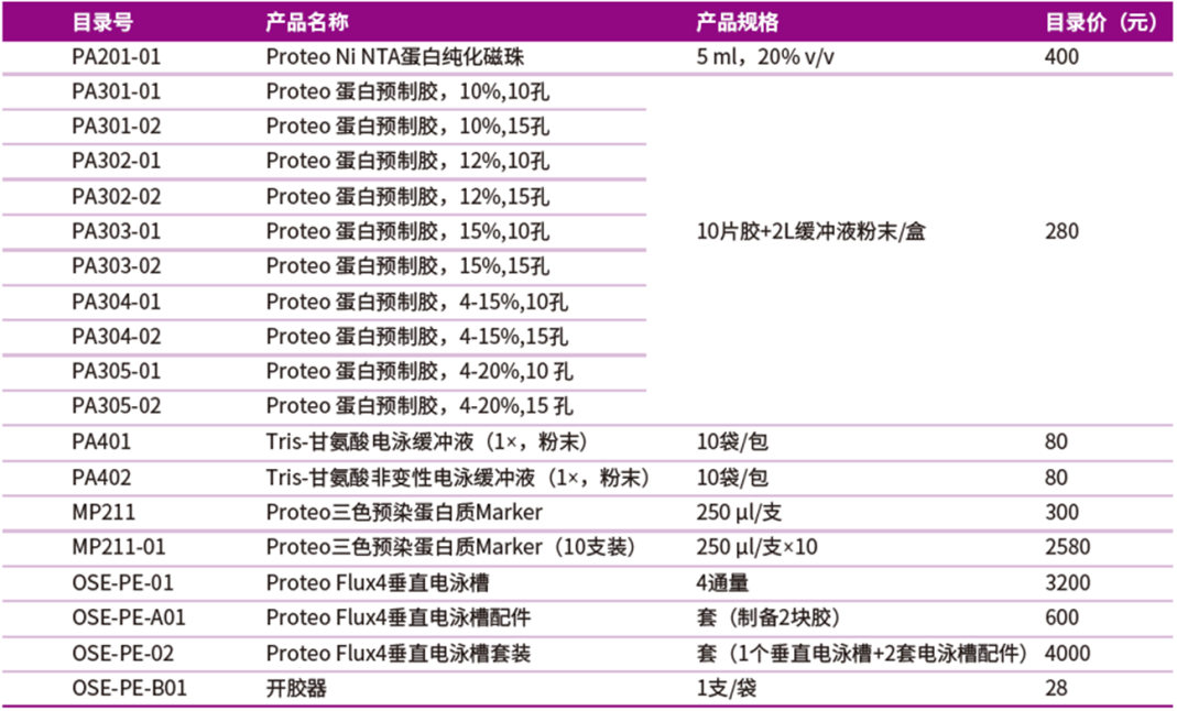 Proteo蛋白系列产品选购信息
