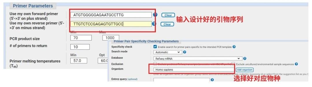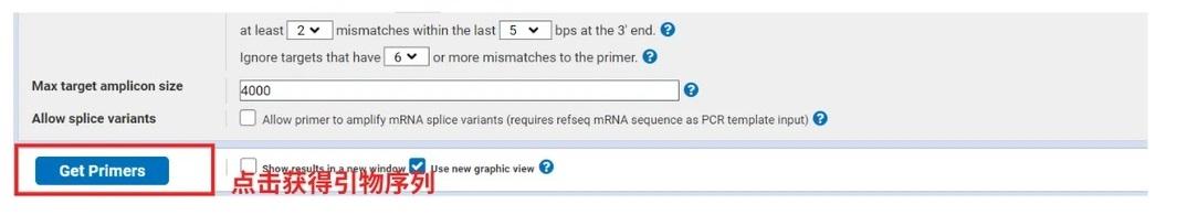 输入前面设计好的序列,选择好对应的物种,点击get primers