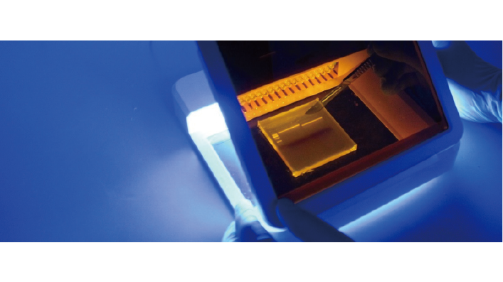 ■ 兼容:既适用于 254 nm 紫外凝胶成像系统,也适用于蓝色可见光激发装置。在蓝光下进行切胶操作时,既可避免紫外切胶对操作人员眼睛和皮肤造成的伤害,又可避免核酸产物长时间暴露在紫外光下发生损伤。