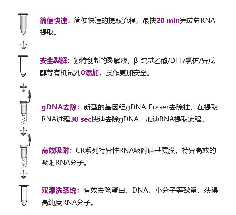 ■ 简便快速,针对于植物样本开发, 30 min 之内快速完成 RNA 提取。