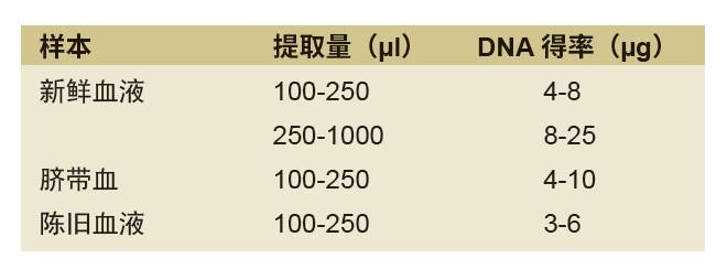 从 100 μl-1 ml 血液中高效纯化高质量基因组 DNA