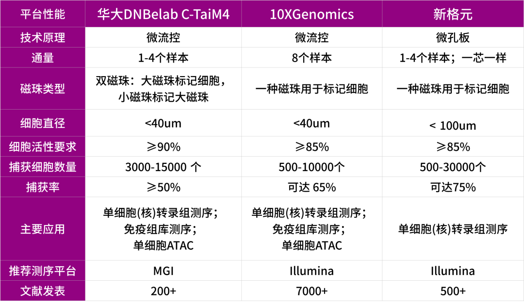 三大单细胞平台技术参数
