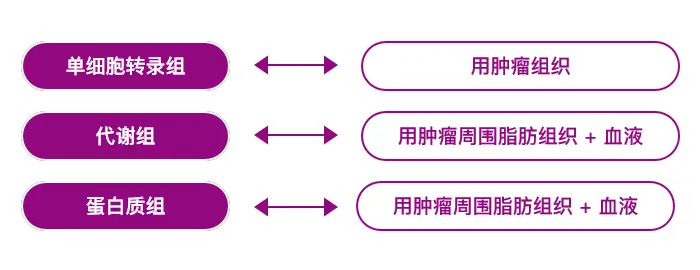 每组至少 30 只小鼠,分肿瘤接种后 7 天、14 天、21 天三个时间点采集肿瘤组织、肿瘤周围脂肪组织及血液样本,通过时序性取样保证数据的时效性与重复度,为多组学分析提供稳定的数据基础。