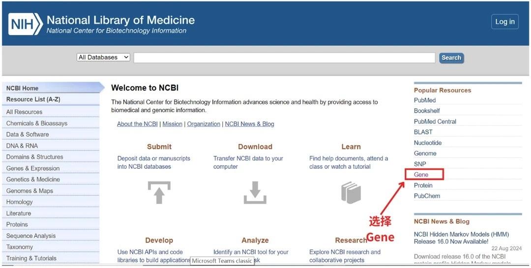 访问NCBI官网,在导航栏中找到"Gene"选项并点击进入。