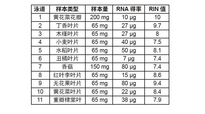 可从植物组织中得到高纯度高浓度的总 RNA