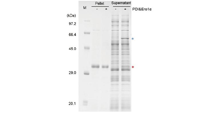 活性提高:在翻译反应中加入人内质网氧化还原酶(Ero1α)和蛋白质二硫异构酶(PDI),利于二硫键的形成